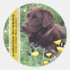 Pegatina Redonda Chocolate Lab en California Poppy Patch Personaliz