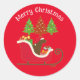 Navidades de Silhouette Labrador Chocolate Sleigh Pegatina Redondo Clásico Rojo. Chocolate Labrador sentado en Santa's Sleigh en el bosque. Creado por Naomi Ochiai.