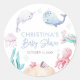 Pegatina Redonda Chorreada Baby Shower Náutica Bajo El Mar