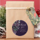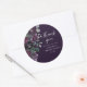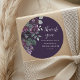 Pegatina Redonda Chorreo Nupcial Floral Morado Oscuro