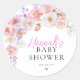 Pegatina Redonda Chorro de flores rosadas para baby shower