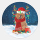 Pegatina Redonda Chow Chow Dog en nieve con regalos de Navidades