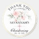 Pegatina Redonda Christening Chica Rosado Floral Gracias