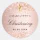 Pegatina Redonda Christening rosa de oro purpurina nombre chica