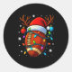 Pegatina Redonda Christmas Football Santa Hat Lights Xmas Pajamas M