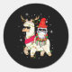 Pegatina Redonda Christmas Gnome On Llama, Cute Alpaca Chanukah Chr