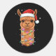 Pegatina Redonda Christmas Lights Alpaca Santa Hat Llama Cute Xmas