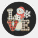 Pegatina Redonda Christmas Love Cute Snowman Buffalo Plaid Winter