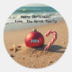 Pegatina Redonda Christmas on the beach starfish candy cane