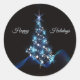 Pegatina Redonda Christmas Party Blue Tree Shiny Black Elegant