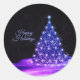 Pegatina Redonda Christmas Party Pink Blue Tree Winter Black Rustic