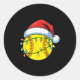 Pegatina Redonda Christmas Softball Ball Santa Hat Softball Xmas Li