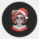 Pegatina Redonda Christmas Sugar Skull Art Woman Santa Hat Festive