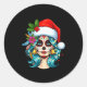 Pegatina Redonda Christmas Sugar Skull Art Woman Santa Hat Festive