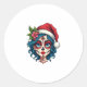 Pegatina Redonda Christmas Sugar Skull Art Woman Santa Hat Festive