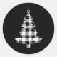 Pegatina Redonda Christmas Tree Black & White Buffalo Plaid Mer