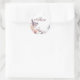 Pegatina Redonda Chupinada de flores rosadas y púrpura con pájaros