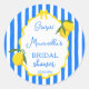Pegatina Redonda Ciao bella rayas azules limones favor de la ducha