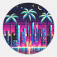 Pegatina Redonda Ciberpalmeras: Neon Nightscape