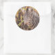 Pegatina Redonda Cierre de cebra rayada en una foto de un bosque mo