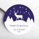 Pegatina Redonda Ciervo Navidad Azul Blanco en Invierno Elegante