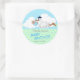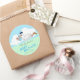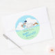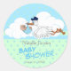 Pegatina Redonda Cigüeña con un niño pequeño y lindo