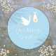 Pegatina Redonda Cigüeña de entrega especial Gold Star Baby Blue