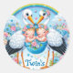 Pegatina Redonda Cigüeñas cortas con bebés gemelos