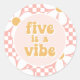 ¡Cinco es un Vibe! Impreso retro de damas con pegatinas de fiesta de cumpleaños de Daisies de color rosa.