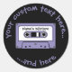 Cinta de audio de época Lilac. Icono de vector con colores de personalizable. Color de fondo personalizado. Dos campos de texto personalizado en círculo y uno en cinta.