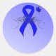 Pegatina Redonda Cinta de sensibilización azul con mariposa