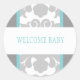 Pegatina Redonda Cinta floral gris Pegatina-turquesa