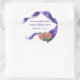 Bonito, los stickers clásicos de boda presentan cintas reales violetas realzadas con flores rosas con texto fácil de actualizar. Perfecto para sobres, favores de boda y más! ¡Disponible en diferentes formas y tamaños!