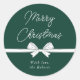 Añada el toque final a su embalaje de regalo esta temporada de vacaciones con estos elegantes Navidades verdes y blancos rodeando pegatinas. Con un estilo de letra escrito a mano que dice 'Feliz Navidad', un arco pintado a mano en blanco con tu nombre personalizado debajo.