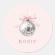 Pegatina Redonda Cinta rosa Coquette Disco Ball personalizada