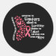 Pegatina Redonda Cinta rosa de mariposa de cáncer de mama