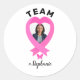 Mostrar amor y apoyo con este diseño personalizado de conciencia sobre el cáncer de mama. El pegatina tiene una cinta rosa en forma de corazón, con espacio para añadir tu propia foto en el centro y un nombre personalizado debajo. Perfecto para crear un "Team [Name]" para honrar a un ser querido, crear conciencia o mostrar solidaridad durante caminatas, recaudaciones de fondos y eventos. Personalizar el nombre, la imagen y la etiqueta para que sea significativa y única para tu equipo.