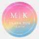 Esta elegante etiqueta de boda presenta un diseño circular con un fondo de gradiente suave que pasa de rosa a azul, creando una estética serena y moderna. La tipografía serif limpia destaca las iniciales "M | K" en la parte superior, seguida de un sincero "GRACIAS", transmitiendo calidez y agradecimiento. El estilo minimalista se centra en la simplicidad y la sofisticación, lo que lo hace perfecto para expresar gratitud en su evento especial. Su suave efecto de acuarela añade un toque de encanto artístico, ideal para mejorar los favores o regalos de la boda.