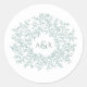 Pegatina Redonda Círculo verde sabio de hojas monograma boda