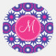 Pegatina Redonda Círculos de estrellas moradas rosadas monograma pe