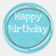 Pegatina Redonda Círculos de Feliz Cumpleaños Turquesa Blanco Marró