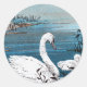 Pegatina Redonda Cisne Blanco Elegante Con Bebé