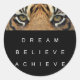 Cita Motivacional Sueño Creer Alcanzar Tiger Ojos Clásico Pegatina Redondo.