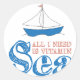 Pegatina Redonda Cita náutica divertida que arrastra el mar de la v