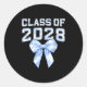 Pegatina Redonda Cl Of 2028 Blue Toile Floral Coquette Bow Girl Kid