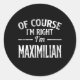 Pegatina Redonda Claro Que Tengo Razón, Soy Maximiliano.