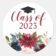 Pegatina Redonda Clase de acuarela floral de Borgoña