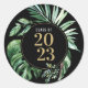 Pegatina Redonda Clase de Graduación de Hoja Tropical Verde de 2021