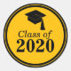 Utilice esta clase de pegatina de graduación de oro negro de 2024 como un sello para sobres o favor de fiesta de colores escolares. Personalizar con el año de clase de tu graduado. Presenta una tapa de grad y una fuente clásica en negro contra un fondo dorado.