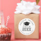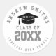Un diseño elegante de graduación en círculo blanco y negro para antiguos estudiantes, personalizado con su nombre, año de graduación y nombre de la escuela...